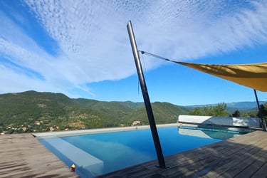 Le Mas des Esparots est situé dans les Cévennes, au sud de la France. Niché au cœur d'un cadre naturel exceptionnel, le gîte offre un séjour paisible et relaxant. Vous pourrez profiter pleinement de la beauté de la région, avec ses paysages pittoresques et sa nature luxuriante. Un hébergement confortable et bien équipé. Les voyageurs pourront se détendre dans le jardin, se rafraîchir dans la piscine avec une vue execptionnelle ou explorer les sentiers de randonnées à proximité .