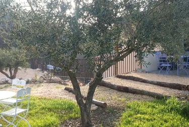 Nous voulions un endroit où chacun peut trouver son espace de quiétude pour se ressourcer, se rafraichir à l'ombre des oliviers , nager en contemplant l'horizon ou découvrir notre nouveau verger.