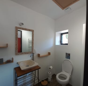 Nous sommes partis dans l'idée de créer notre nid au calme, sous le soleil, entouré par la nature et capable d'accueillir nos hôtes.